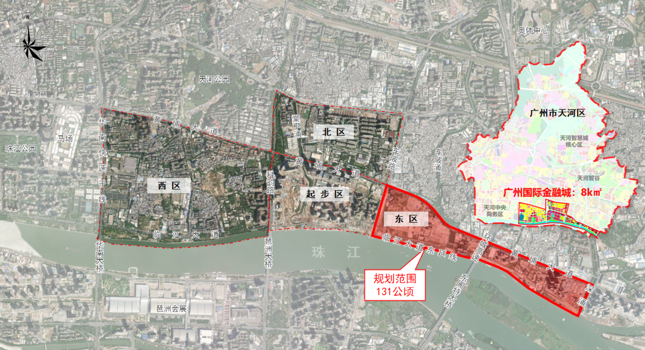金融城东区位于天河区东南部,西至车陂南路、北至黄埔大道东、东邻深涌、南临珠江。片区坐拥3公里开阔的珠江南向望江界面,是广州活力创新轴与珠江高质量发展带的重要交汇节点,承载着提升城市能级、塑造滨水形象的战略使命。本次规划围绕“城央水岸示范区、科创总部集聚区”总体定位,着力构建集约高效、宜居宜业的现代化城市空间。