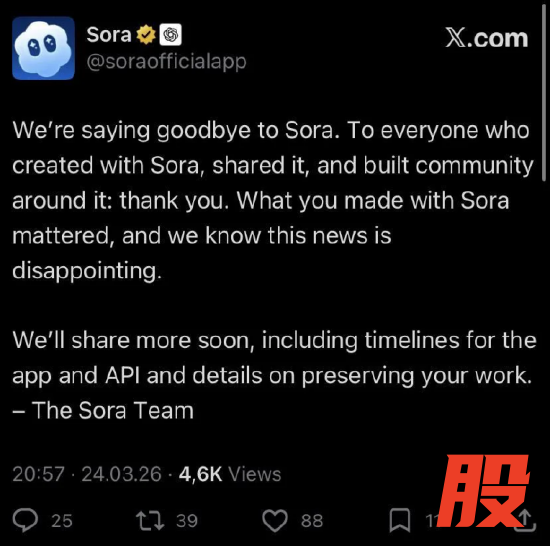 “我们正在告别Sora。我们知道这个消息令人失望。你们用Sora创造的东西非常重要。”