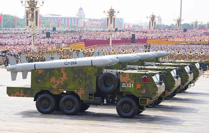 方队采取海军、空军、火箭军联合编组模式,受阅的长剑-20A、鹰击-18C、长剑-1000导弹,是实施远程精确打击、多域慑战制胜的“点穴”利器。