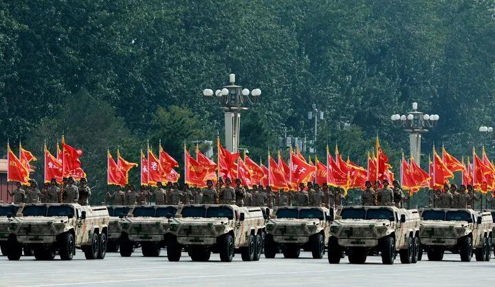 9月3日,纪念中国人民抗日战争暨世界反法西斯战争胜利80周年大会在北京隆重举行。这是战旗方队接受检阅。新华社记者 王晔 摄