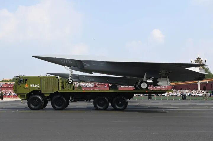 9月3日,纪念中国人民抗日战争暨世界反法西斯战争胜利80周年大会在北京隆重举行。这是空中无人作战方队接受检阅。新华社记者 范培珅 摄