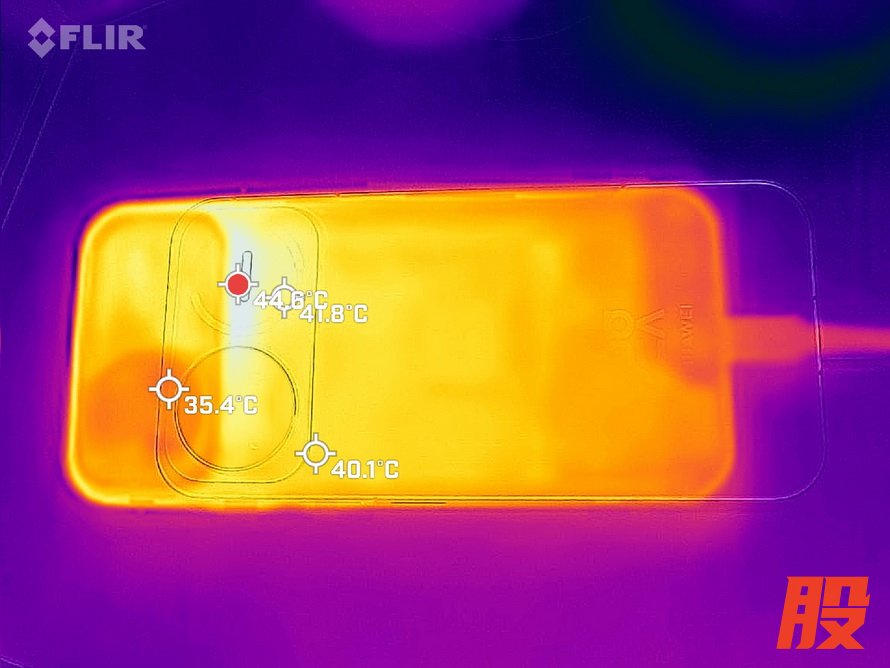 在《原神》跑图测试结束之时,我们还采用了红外测温仪测试了手机表面温度,测试时环境温度约为23℃,nova 15 Pro的最高温度出现在前置摄像头边上,为43.6℃,较热的区域也有43℃左右;背面最高温度为44.6℃,出现红枫原色镜头的边上。综合游戏帧率与发热来说,nova 15 Pro的游戏性能表现还是让人满意的。